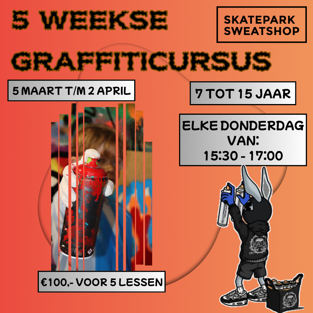 Je leert oa het maken van schetsen, 3D letters, kleuren combo’s, can control (het gebruik van spuitbussen en caps) en nog veel meer.